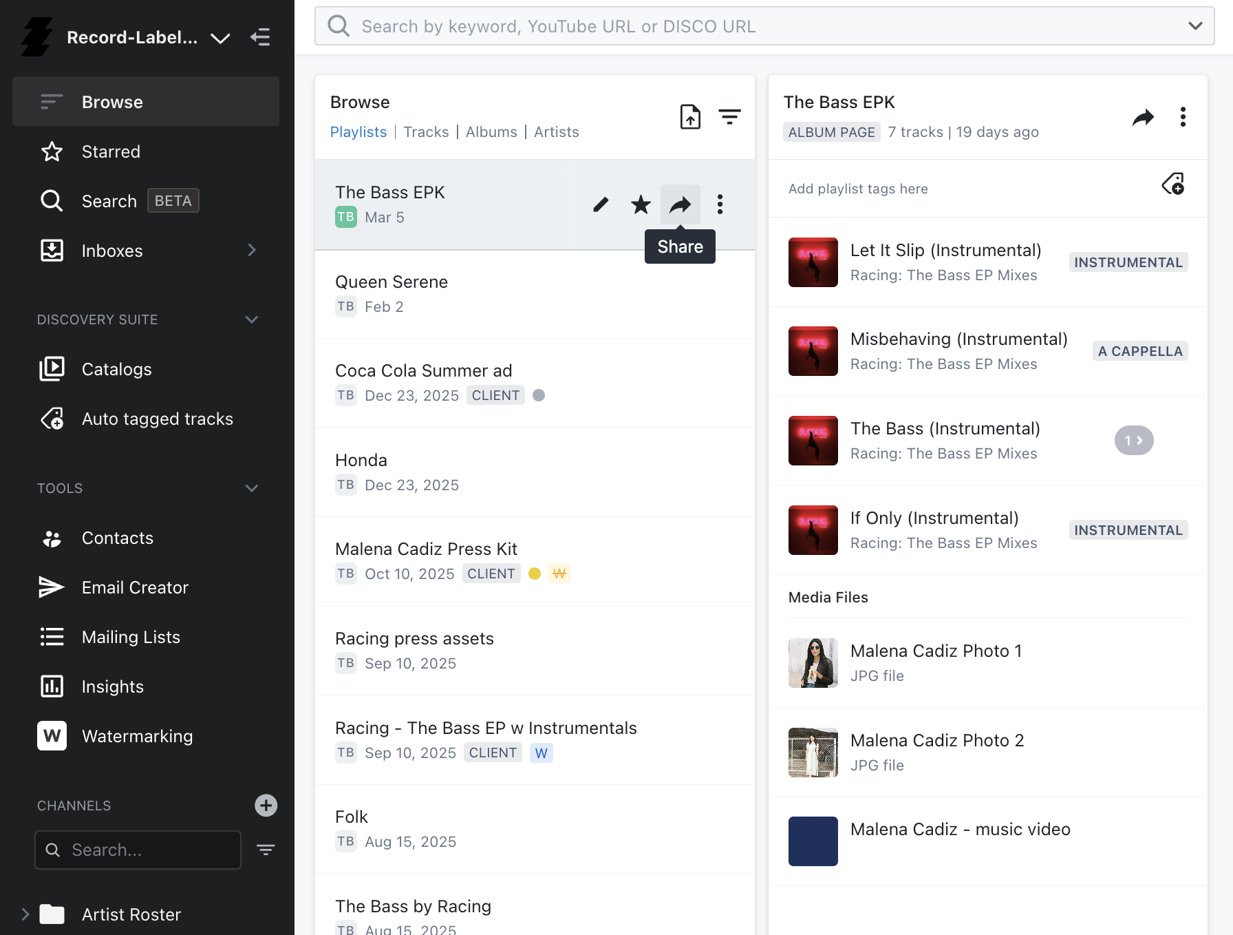 A DISCO EPK helps you present a project clearly and professionally without scattering files across multiple links and attachments.